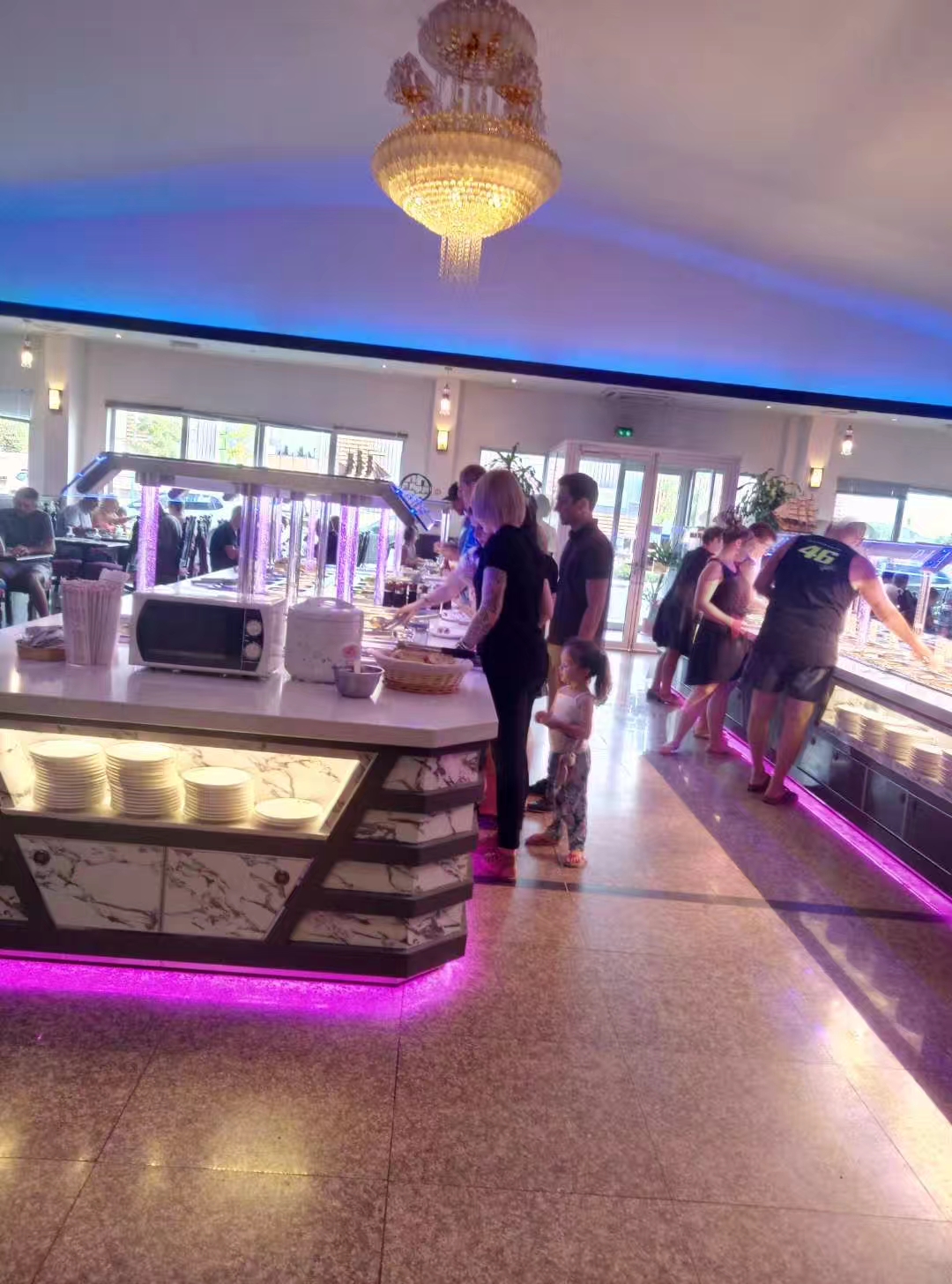 Buffet pratiquement vide surtout au niveau des entrées et c'est pas faute de l'avoir signalé et quand c'est un peu réapprovisionner c'est pour voir le cuisto arriver avec des boîtes de conserves c'est moyen et pas professionnel...pas très chaleureux niveau accueil et la propreté sur les assiettes est à revoir Dommage mais je ne recommande pas ce lieu